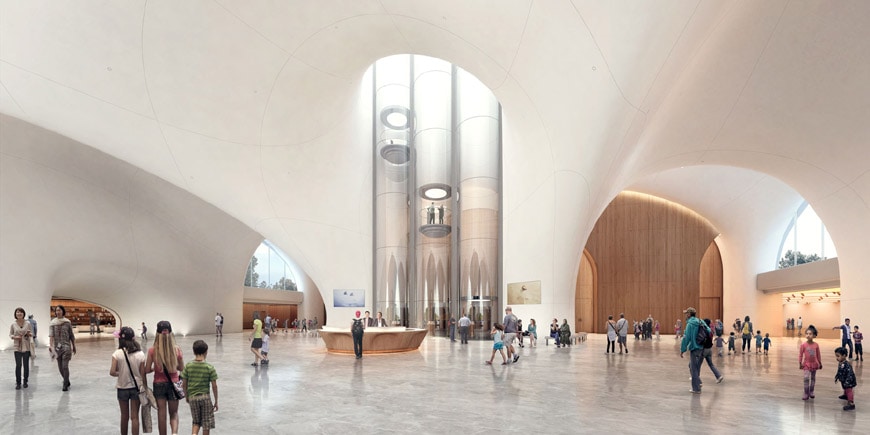 In early 2018, MAD Architects and the museum’s founders presented a revised design, also disclosing new renderings of the future museum. The revised project also features a modified curved roof and a large, cavern-like lobby.