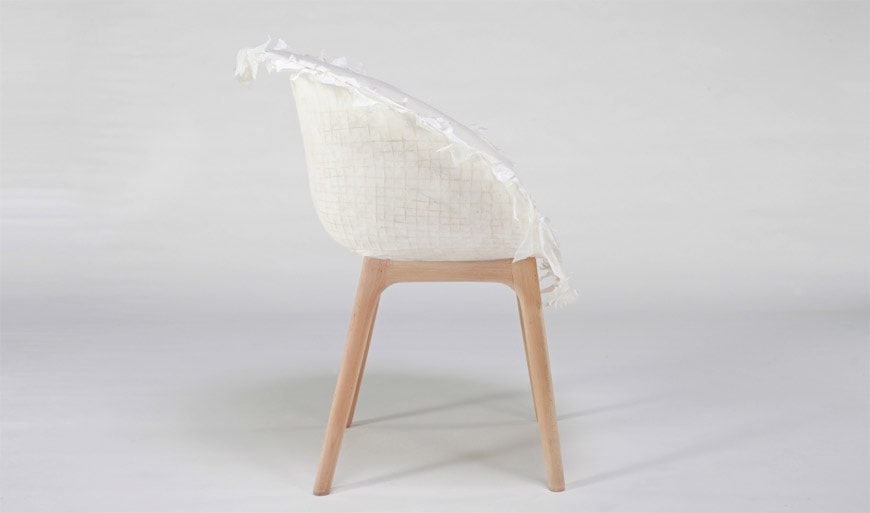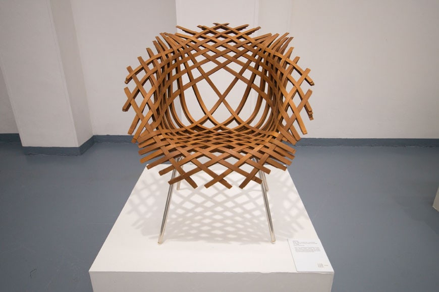 [róng] – Sedia PIAO 2. Il sedile è realizzato in carta con una griglia strutturale di strisce ricavate dal bambù. Designers: Zhang Lei, Christoph John, Jovana Zhang.