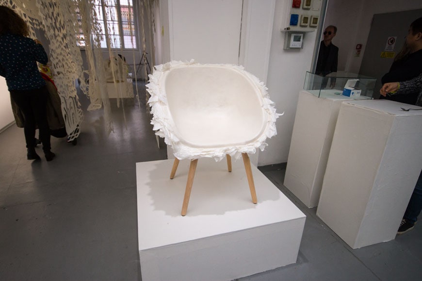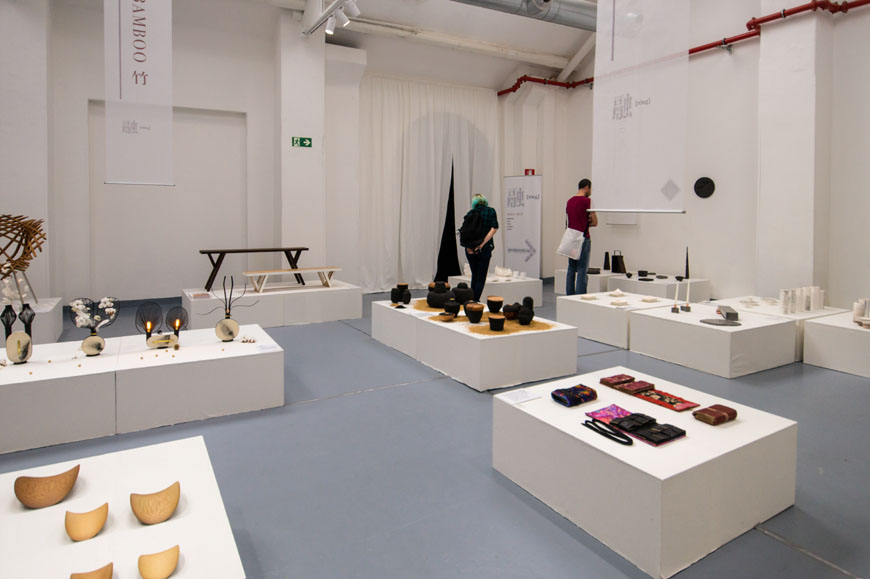 La bella mostra allestita nelle ex Officine della Torneria di via Novi, in zona Tortona, espone circa 70 oggetti – abiti, contenitori, lampade, sedie, specchi, gioielli – realizzati utilizzando prevalentemente cinque materiali molto presenti nella cultura materiale cinese; il bambù, la seta, l’argilla, il rame e la carta.