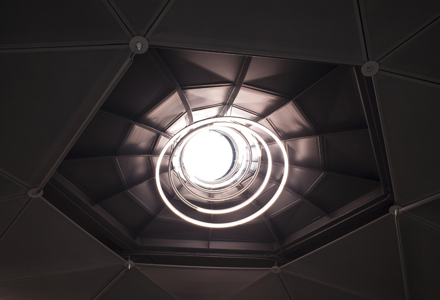 Kunsthaus Graz, Uno dei lucernari visto dall’interno. Foto © Christian Plach