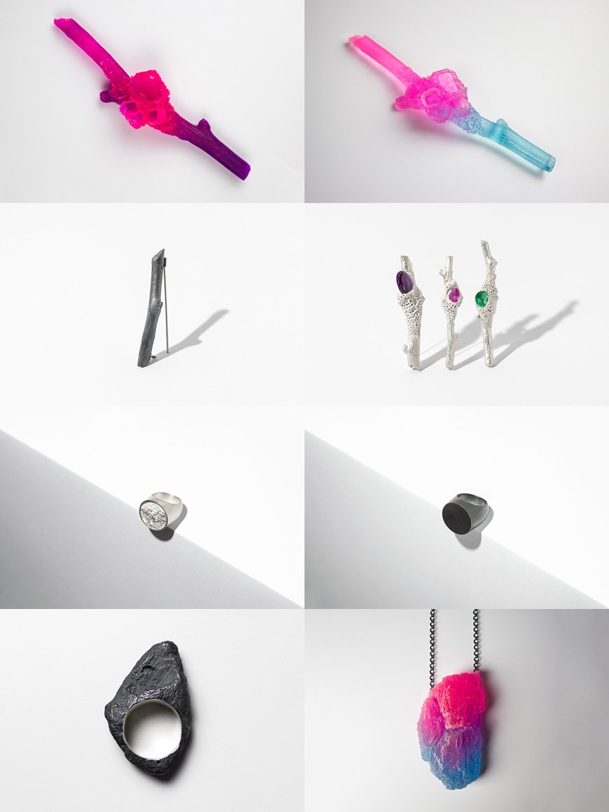 Aqua Lilium Lilac; Aqua Lilium Rose; Last Branch Brooch; Drift Wood Brooch; Signet Ring; Signet Ring Wood; Carbo; Sierra.