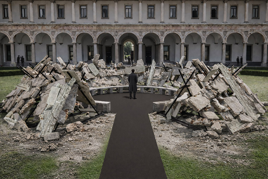 Realizzata con il contributo di Holcim Italia – azienda leader nel settore dei materiali per edilizia – Mater sarà installata al centro del Cortile d’Onore dell’Università degli Studi di Milano e sarà visitabile da 20 a 30 aprile. Un cumulo di macerie che è insieme rovina e architettura, limite e protezione, sarà disposto seguendo una forma circolare del diametro di circa 16 metri. L’accesso delle persone all’interno del cerchio di macerie attiva lo spazio, chi entra ne diventa parte e trasforma lo stato della materia che lo definisce: da detrito a infrastruttura relazionale.