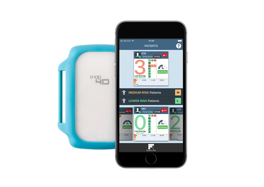 Il dispositivo wireless Snap40 progettato da Christopher McCann e Stewart Whiting che sfrutta l’intelligenza artificiale per monitorare i parametri vitali dei pazienti ospedalieri
