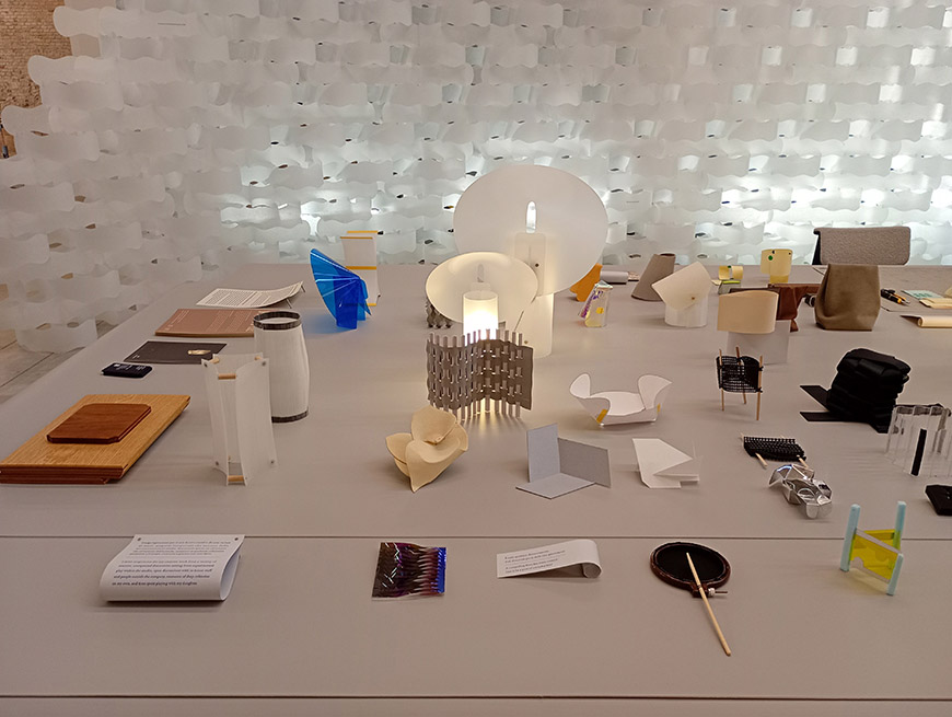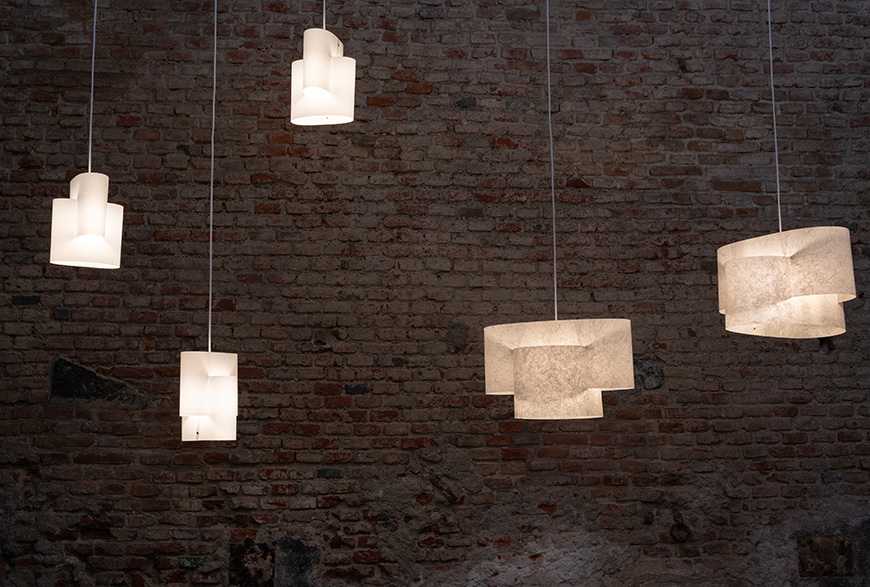 The 5VIE district, Cavallerizze on Via Olona. Overview and details of the exhibition “From Flat” by Japanese designer Ryota Yokozeki. “From Flat” showcases the results of research focused on creating three-dimensional objects, such as lamps, containers, partition walls, and tools from flat shapes. Photo Inexhibit 2026