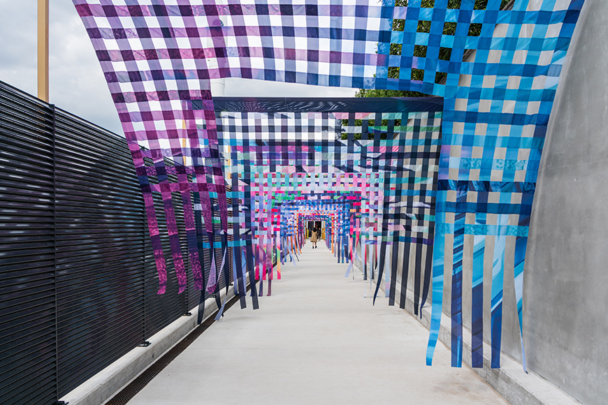 The Eindhoven-based duo transforms large-scale advertising banners – some originally measuring up to 18 × 46 meters – into fifteen vibrant textile portals.