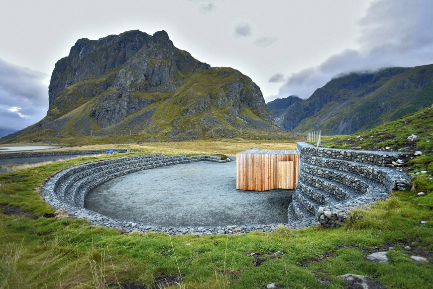 Eggum, the amphitheater, and the service building; photo Lars Nordbye