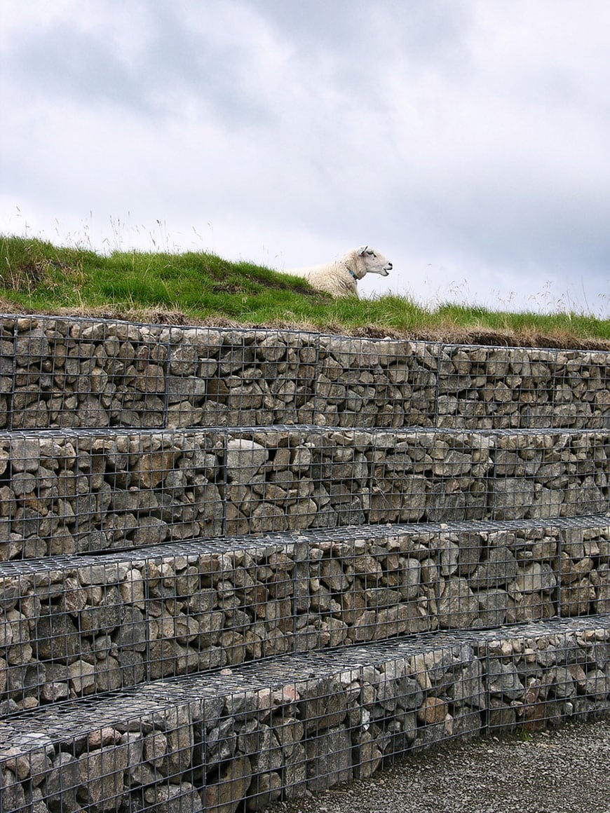 The gabion walls which define the amphitheater and the parking areas were filled with locally sourced stones; photo Steinar Skaar